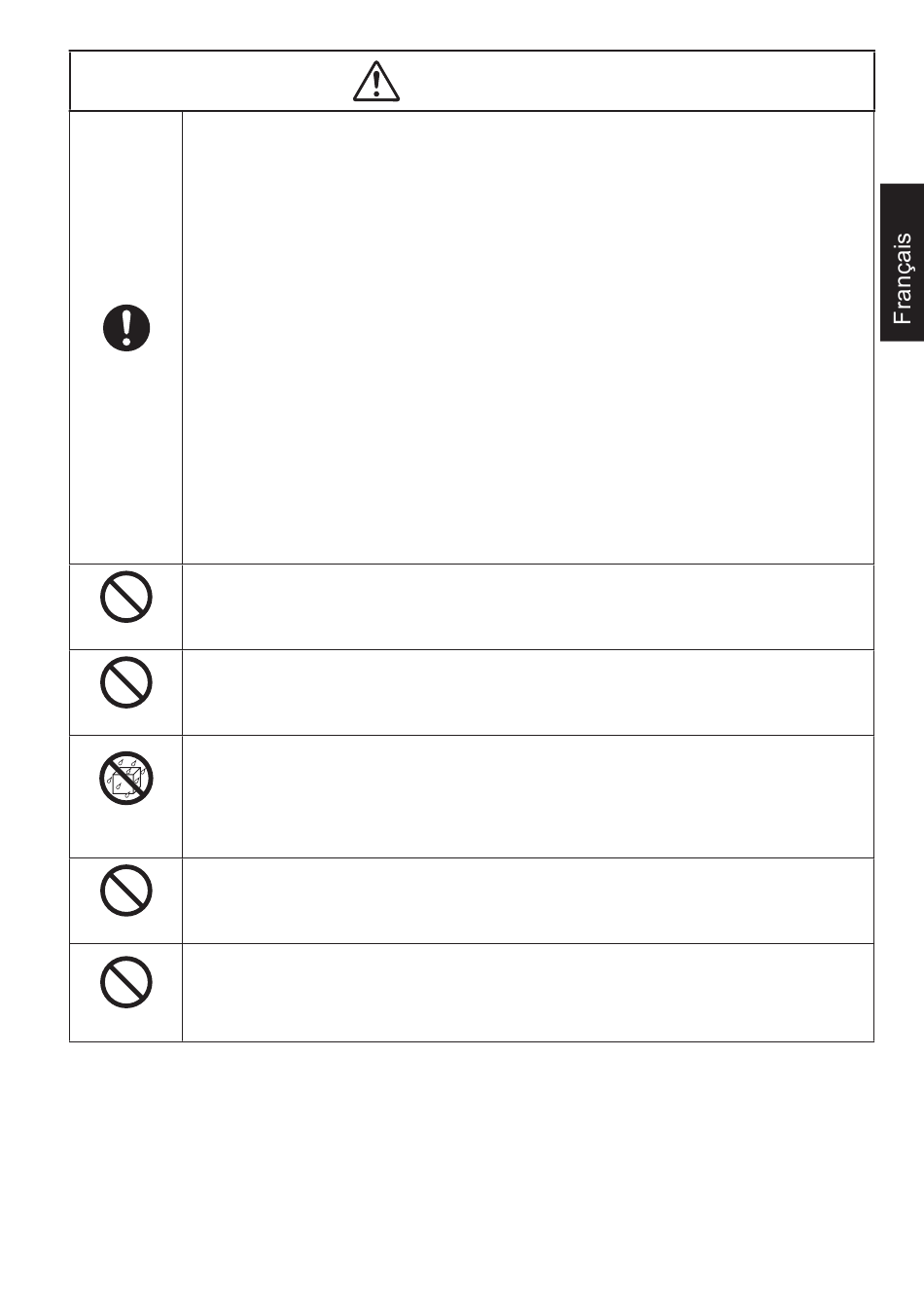 • Ne placez JAMAIS un produit dans un endroit instable.