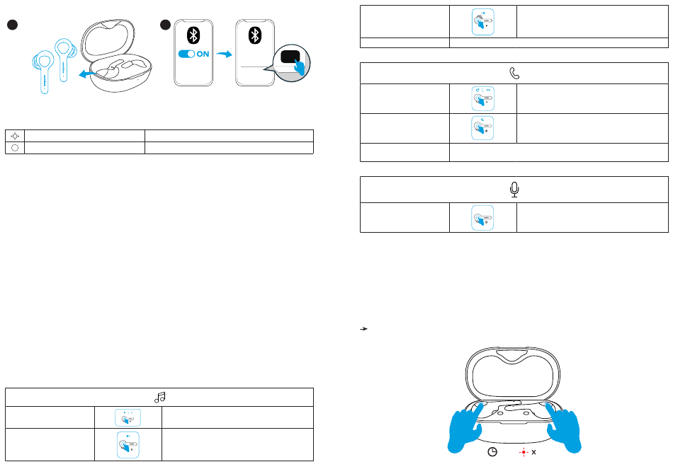 2. 양쪽 이어버드의 버튼을 ## -1 초간 길게 누릅니다 . LED 표시등이 3 번 빨간색으로 깜박인 다음 흰색