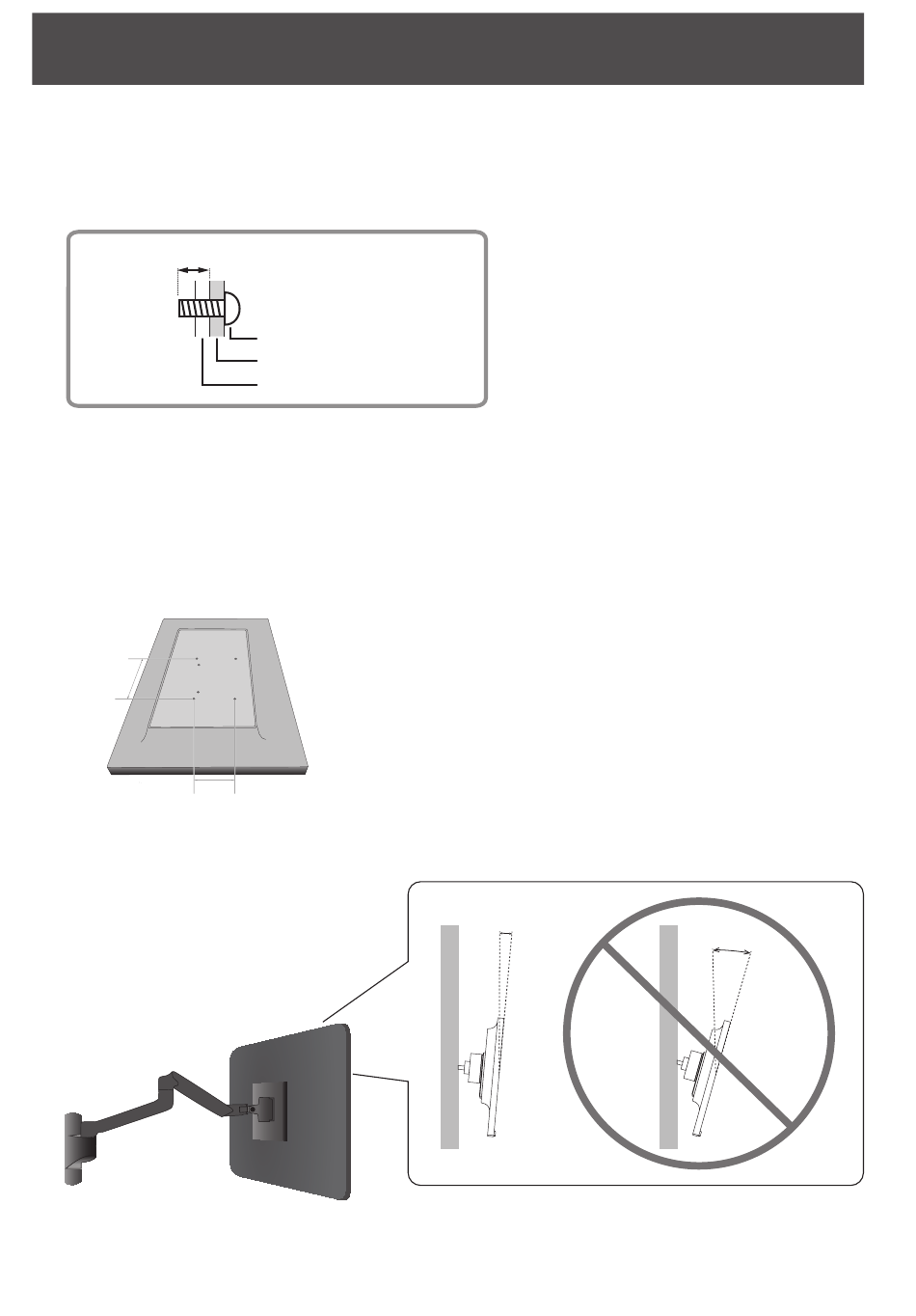 To attach a VESA-compliant mounting bracket, use M4 screws that are 6 mm to 10 mm longer than