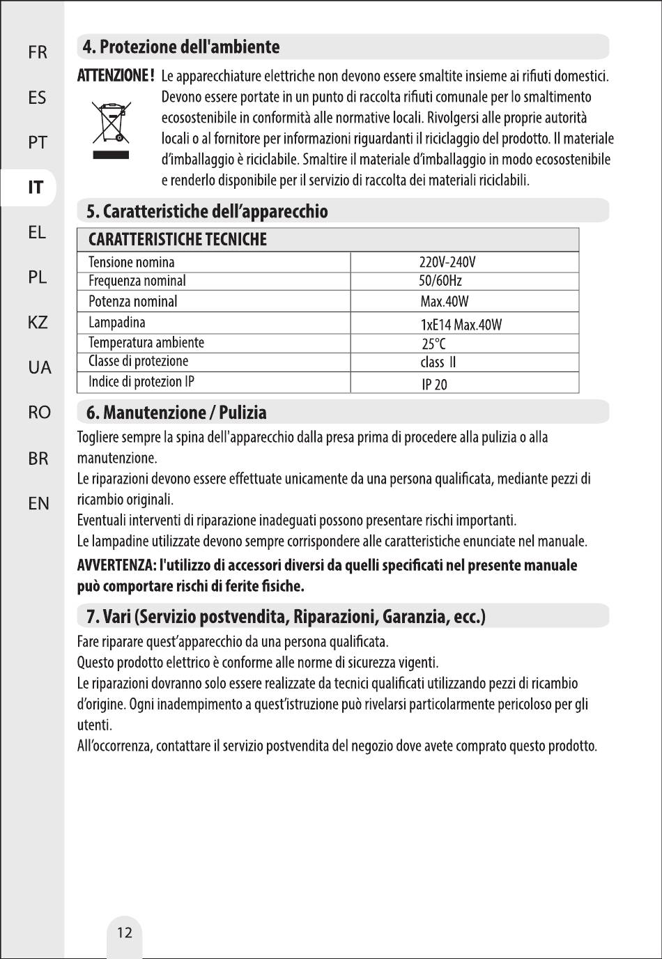 elettriche n ondevono e ssere smaltite insieme a irifiutidomestici.