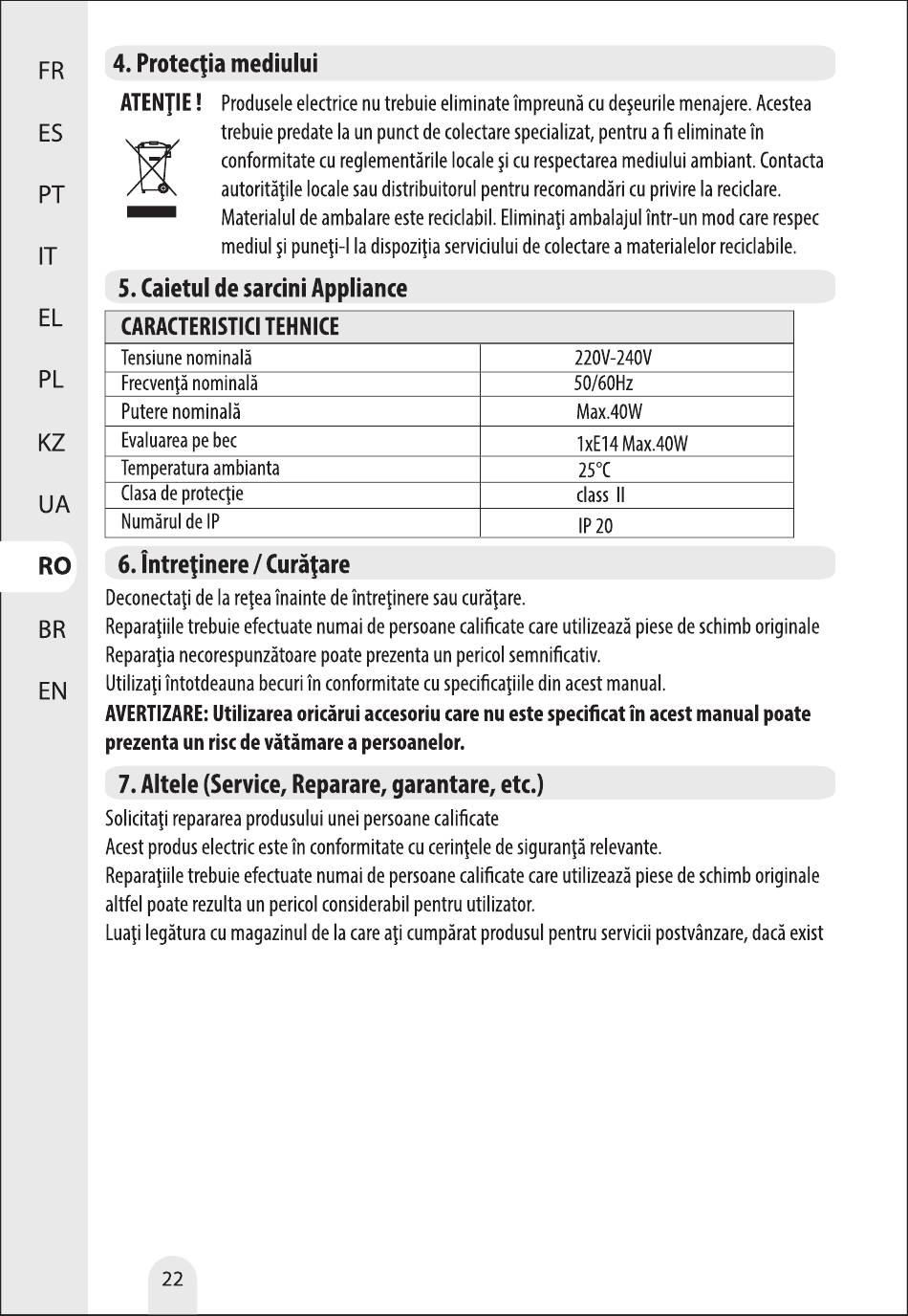 ATENTIE! Produsele electrice n utrebuie eliminate i mpreunä c udeseurile menajere. Acestea