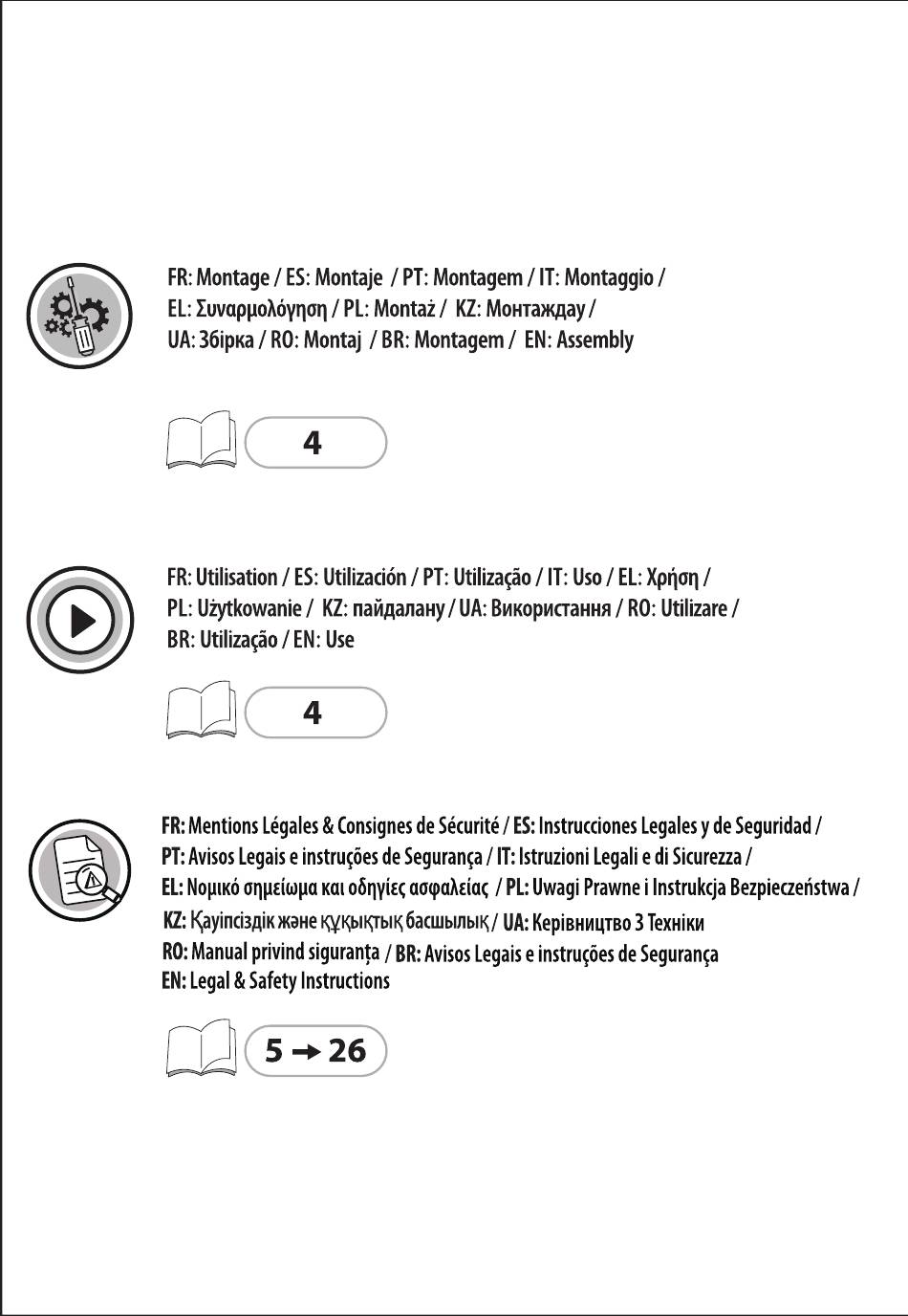 FR: U tilisation / ES: U tilizaciön / PT:Utilizaqäo / IT:Uso/ EL:Xprion/