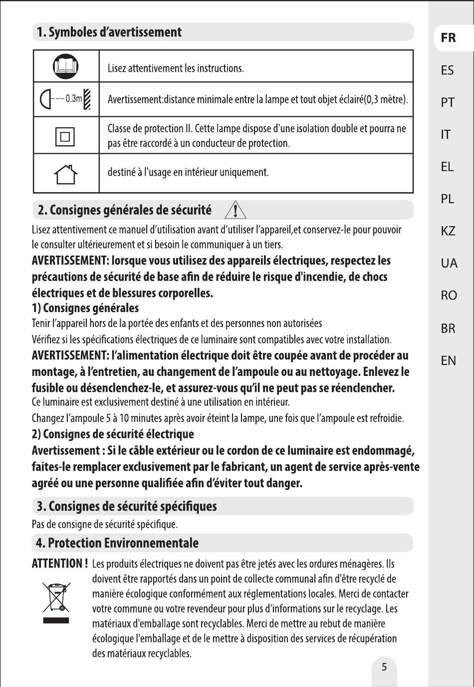 Classe d eprotection II.Cette lampedispose d'uneisolation doubleet pourra ne