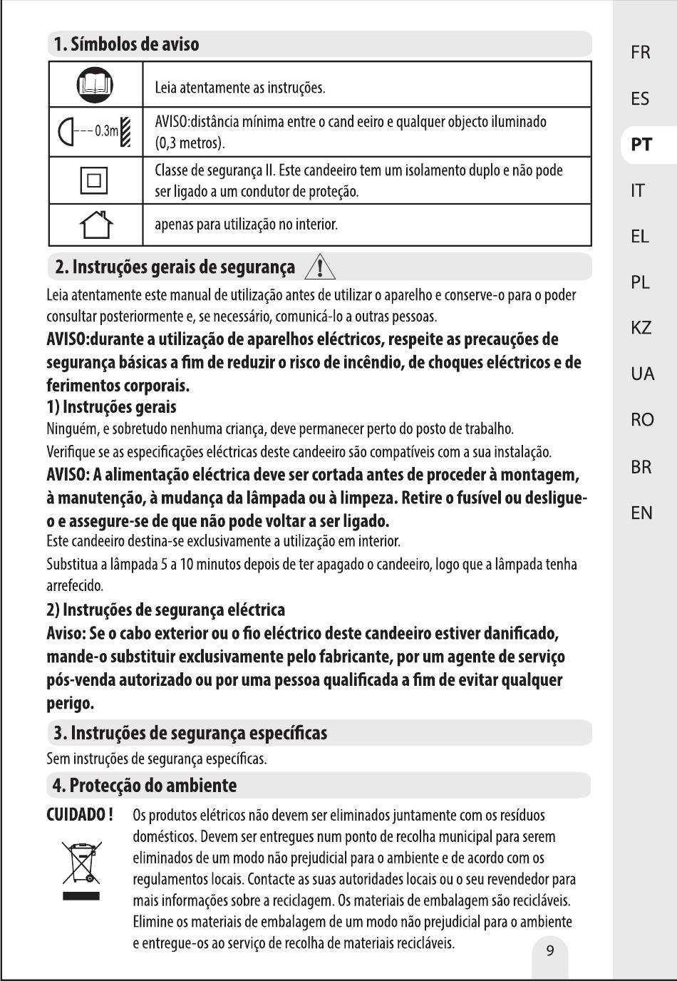 CUIDADO! 0sprodutos elétricos n äo devem sereliminados juntamente c om osresiduos