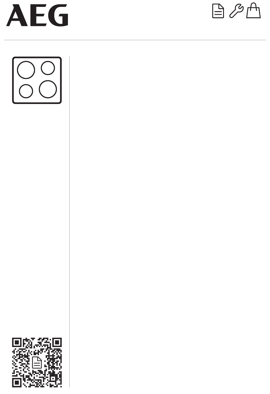 EN User Manual | Hob FR Notice d'utilisation | Table de cuisson DE Benutzerinformation | Kochfeld Istruzioni per l’uso | Piano cottura ES Manual de instrucciones | Placa de cocción NIO84B00IB aeg.com\register...