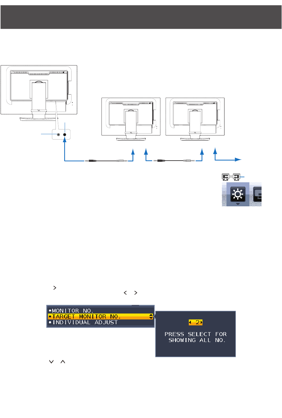 Parcourez le menu OSD du moniteur secondaire à l'aide des touches de commande du moniteur principal.