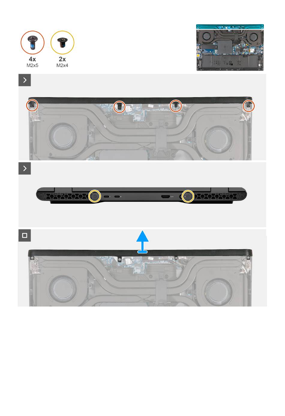 1. Retirez les quatre vis (M2x5) qui fixent le cache d'E/S arrière à l'assemblage du repose-poignets et du clavier.