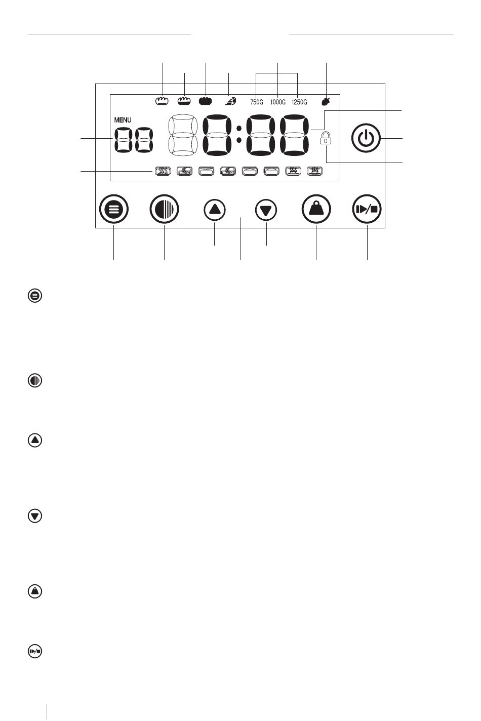 START STOP: Drücken Sie diese Taste, um den Brotbackautomaten zu starten, und drü-