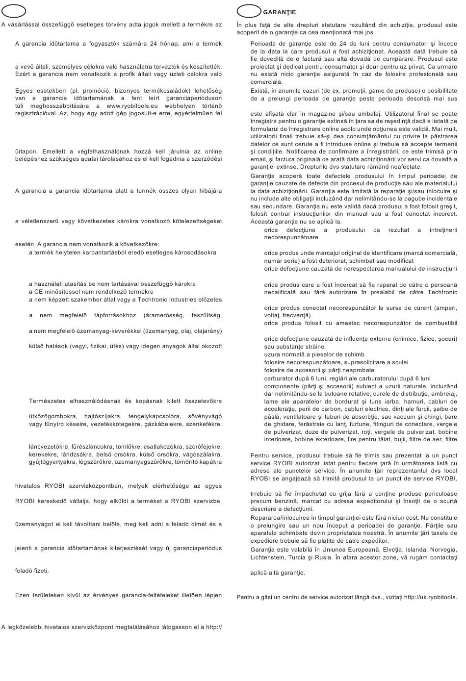 folosind înregistrarea pe site-ul www.ryiobitools.eu. Eligibilitatea aparatului