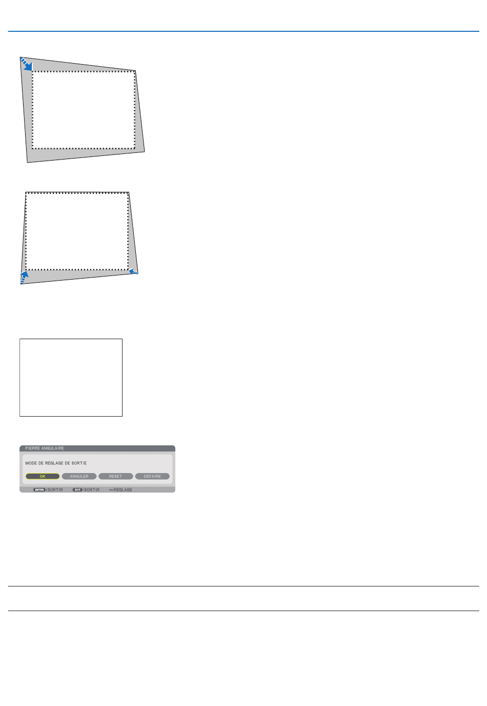 7. Utilisez la touche ▲▼◀▶ pour déplacer le cadre de l'image projetée comme montré dans l'exemple.