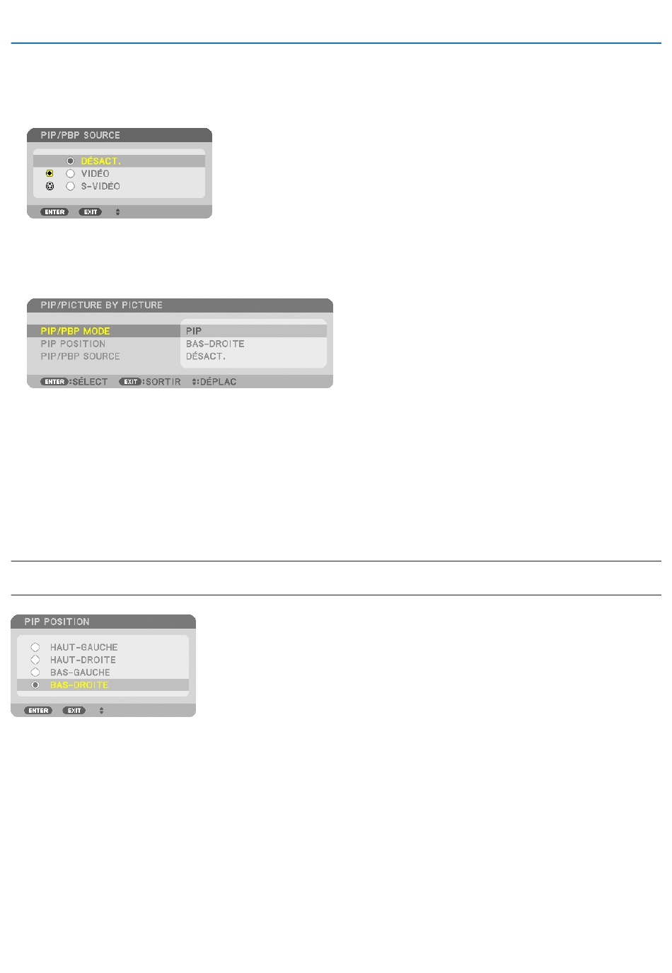 Utilisez les touches ▲ ou ▼ pour choisir la position de l'image secondaire puis appuyez sur la touche ENTER.
