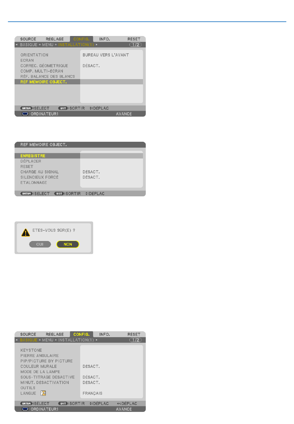 4. Appuyez sur la touche ▼ pour sélectionner [RÉF MÉMOIRE OBJECT.] puis appuyez sur la touche ENTER.