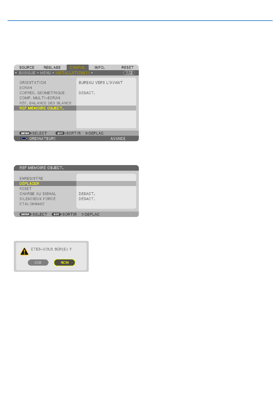 4. Appuyez sur la touche ▼ pour sélectionner [RÉF MÉMOIRE OBJECT.] puis appuyez sur la touche EN-