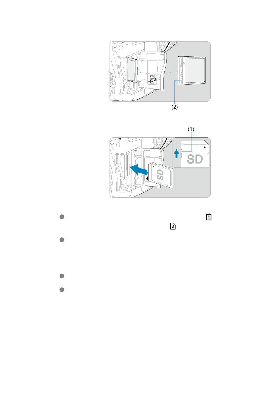insérez le côté ouvert de la carte (2) dans le logement de la carte.