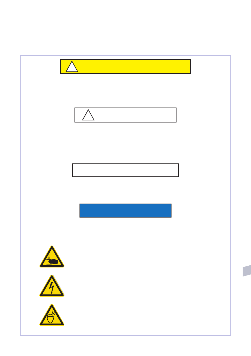 Avertissement de risque de blessure de la main.