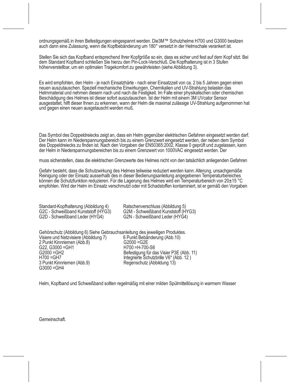 überschritten werden. Elektroschutzhelme sollten nicht in solchen Bereichen eingesetzt werden, in denen die