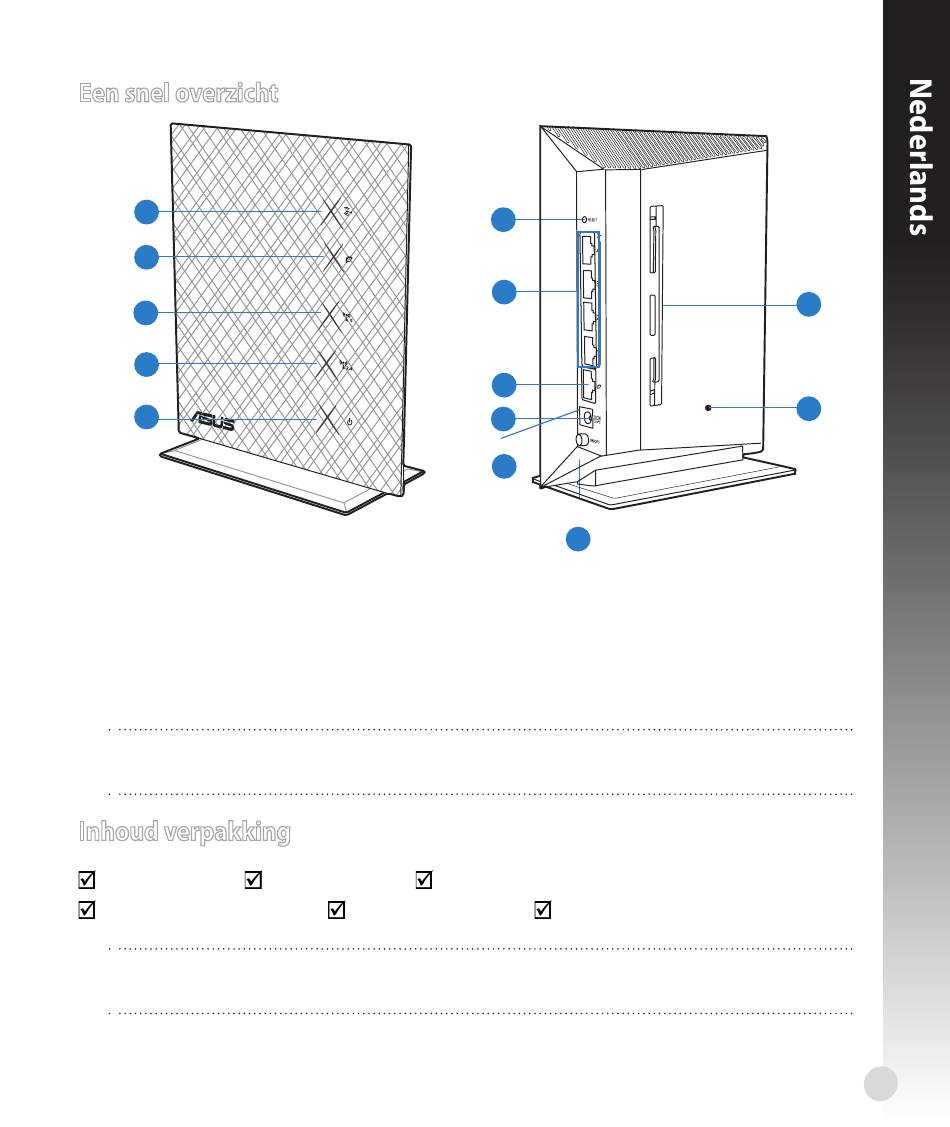 OPMERKING: *Er zijn twee LED's in de WAN- en LAN-poorten. De gele LED staat voor