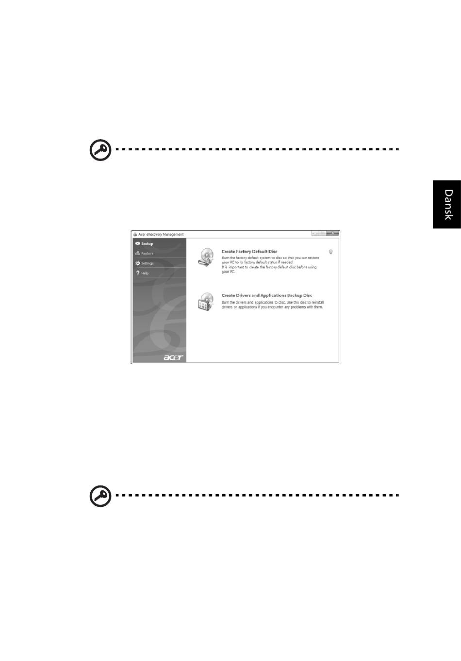 Klik på Start > Alle programmer > Acer, og klik så på Acer eRecovery