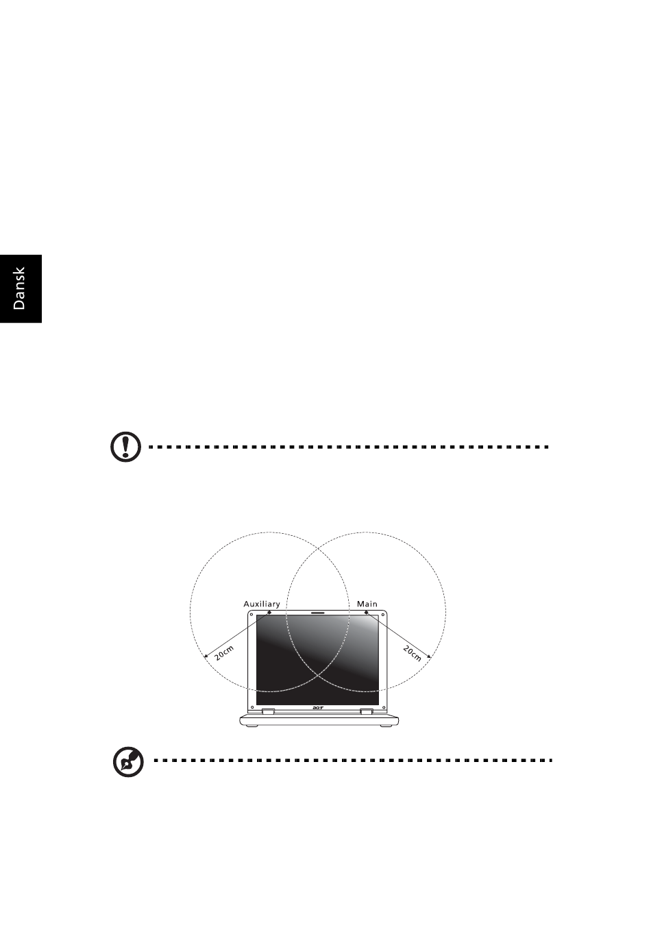 være en afstand på 20 cm (8 tommer) imellem antennen og det