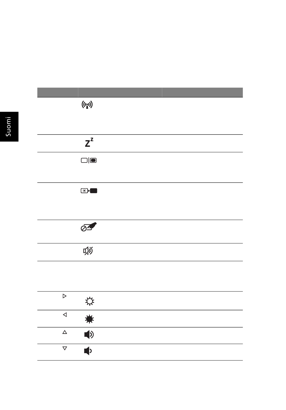 Aktivoidaksesi pikavalintanäppäimet paina ja pidä painettuna <Fn> -näppäintä