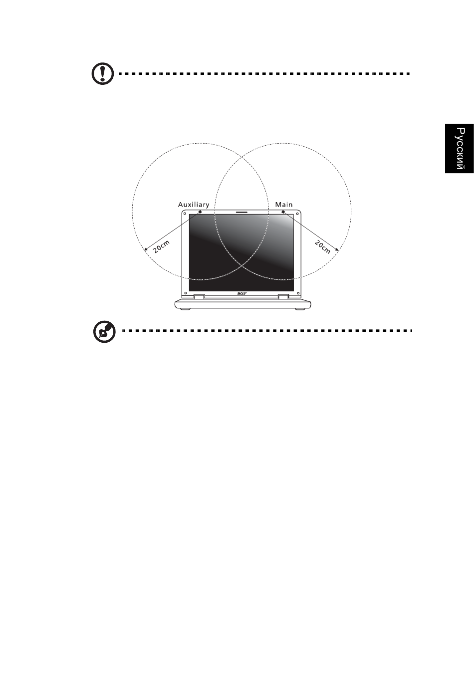 беспроводной сети Mini-PCI на расстоянии не менее 20 см от