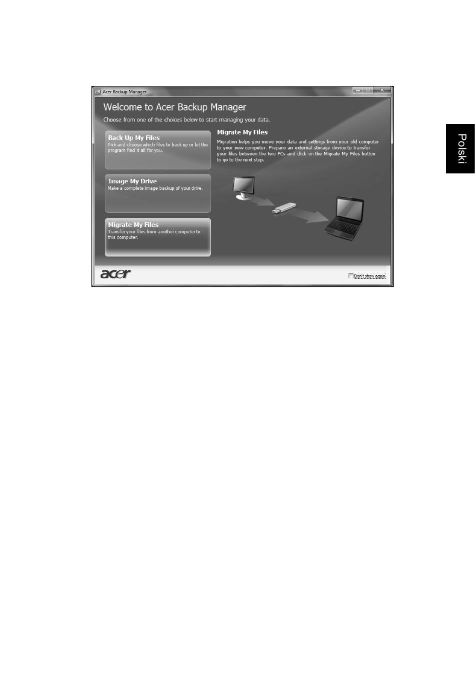 Aby zmienić ustawienia w dowolnym czasie, uruchom aplikację Acer Backup