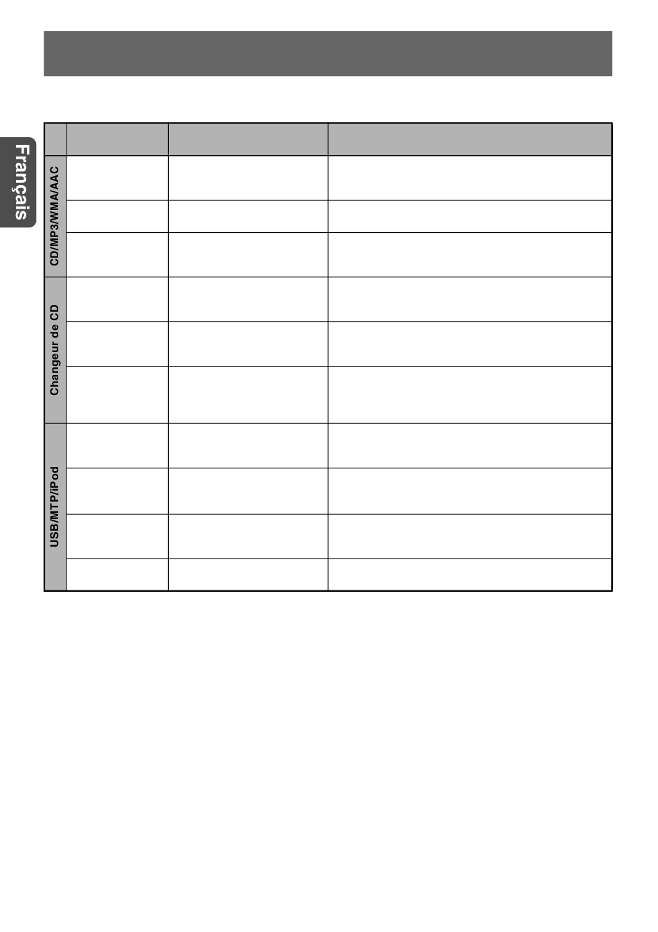 Utilisez uniquement des fichiers MP3/WMA/AAC