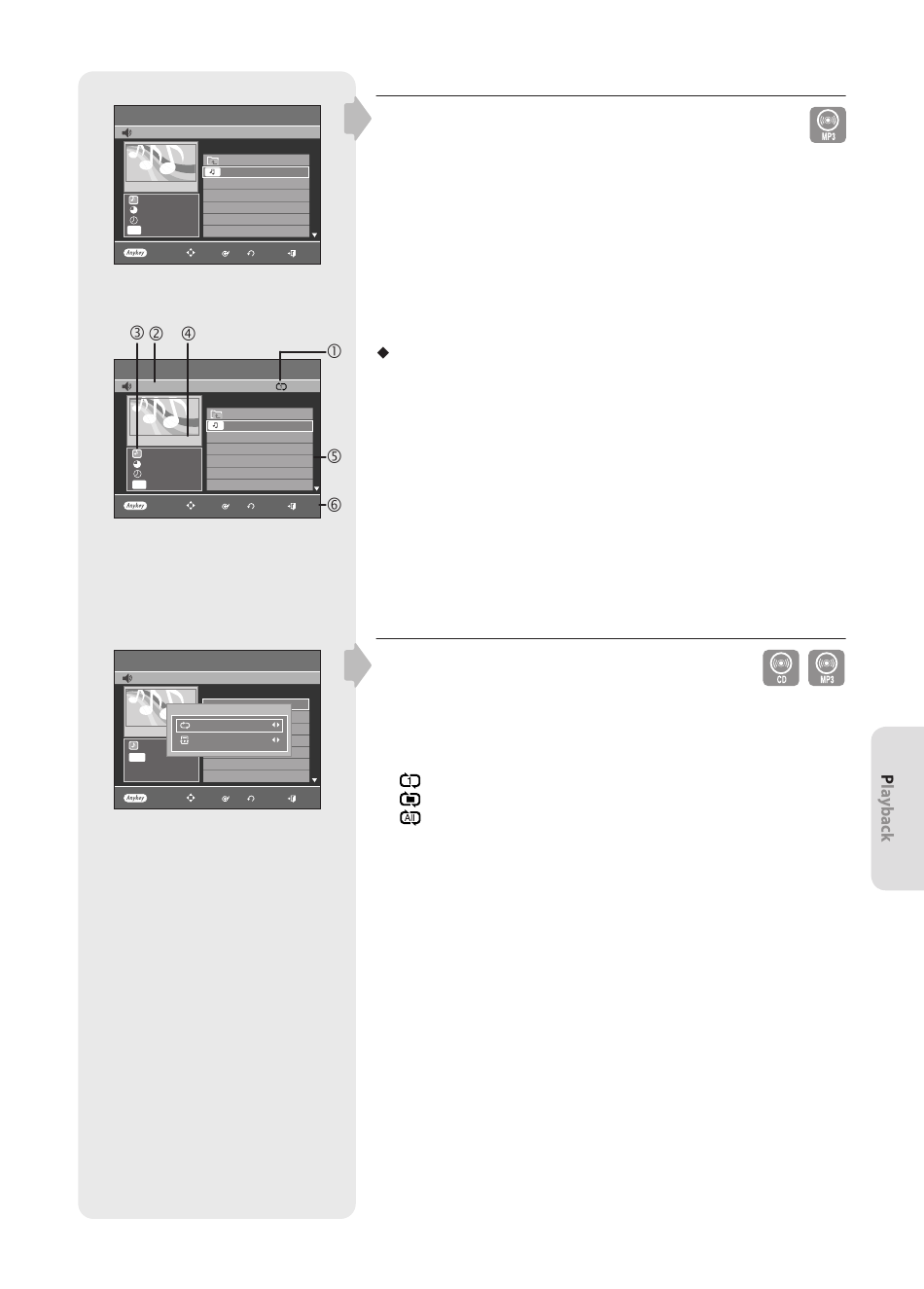 The MP3 menu appears and the tracks(songs) are played automatically.