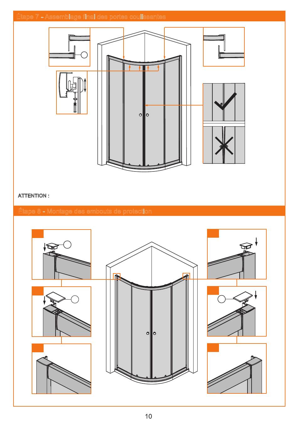 ATTENTION : Veillez à aligner les portes de sorte que les roulettes de guidage inférieures glissent facilement dans les