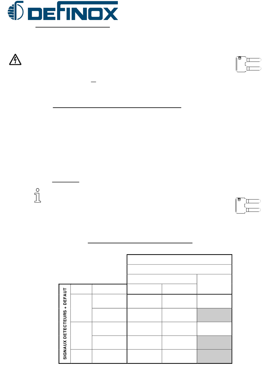 - Signaux détecteurs + défaut : 24VDC sortie PNP.