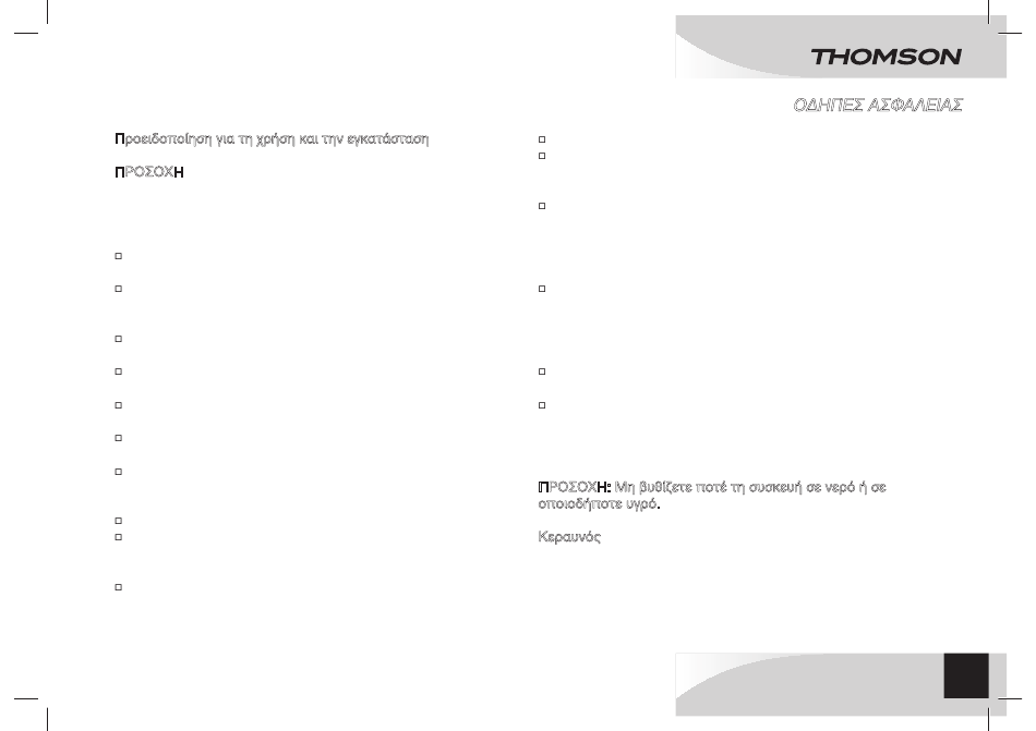 ΠΡΟΣΟΧΗ : Μην εκθέτετε τη συσκευή σε βροχή ή υγρασία