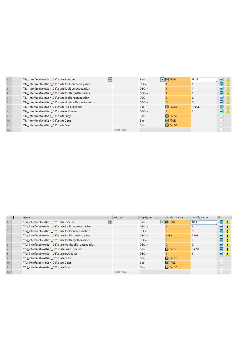 Dans l'exemple 2, un outil est chargé dans un préhenseur (magasin tampon 9998) pour préparer