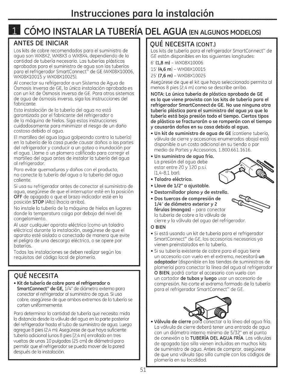 plomerfa) para conectar la Ifnea del agua al refrigerador