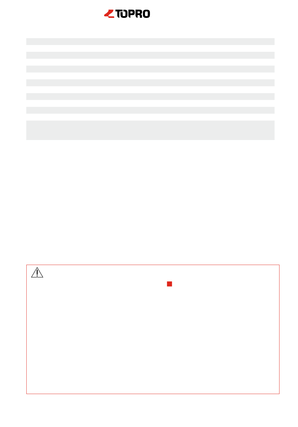 utilisation en intérieur, sur sol plat et stable. Faites attention si vous utilisez TOPRO TAURUS dans un logement privé
