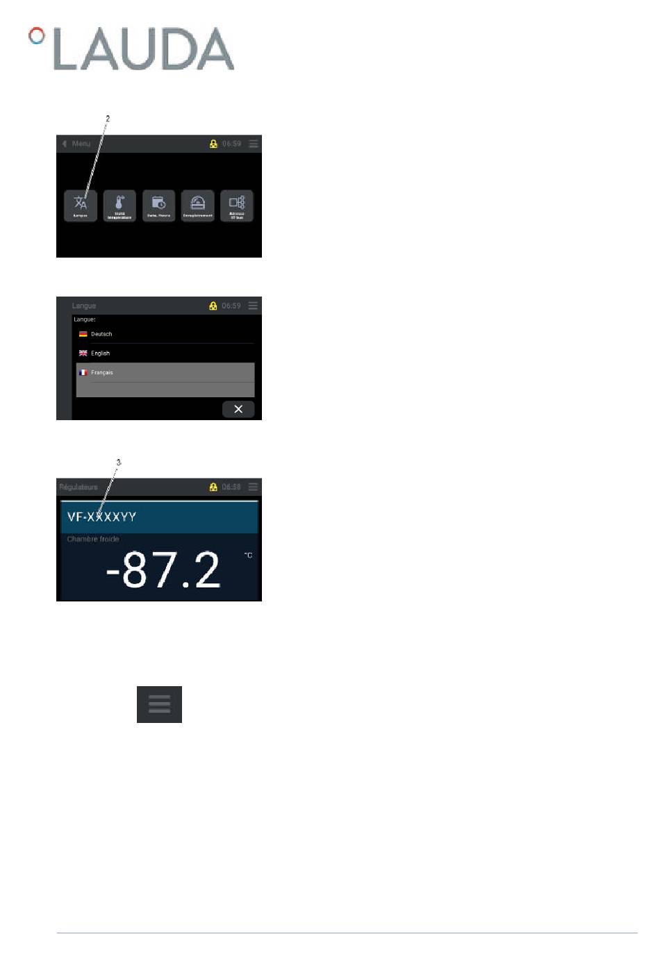 Sélectionner la langue (allemand, anglais ou français) sur l'écran de