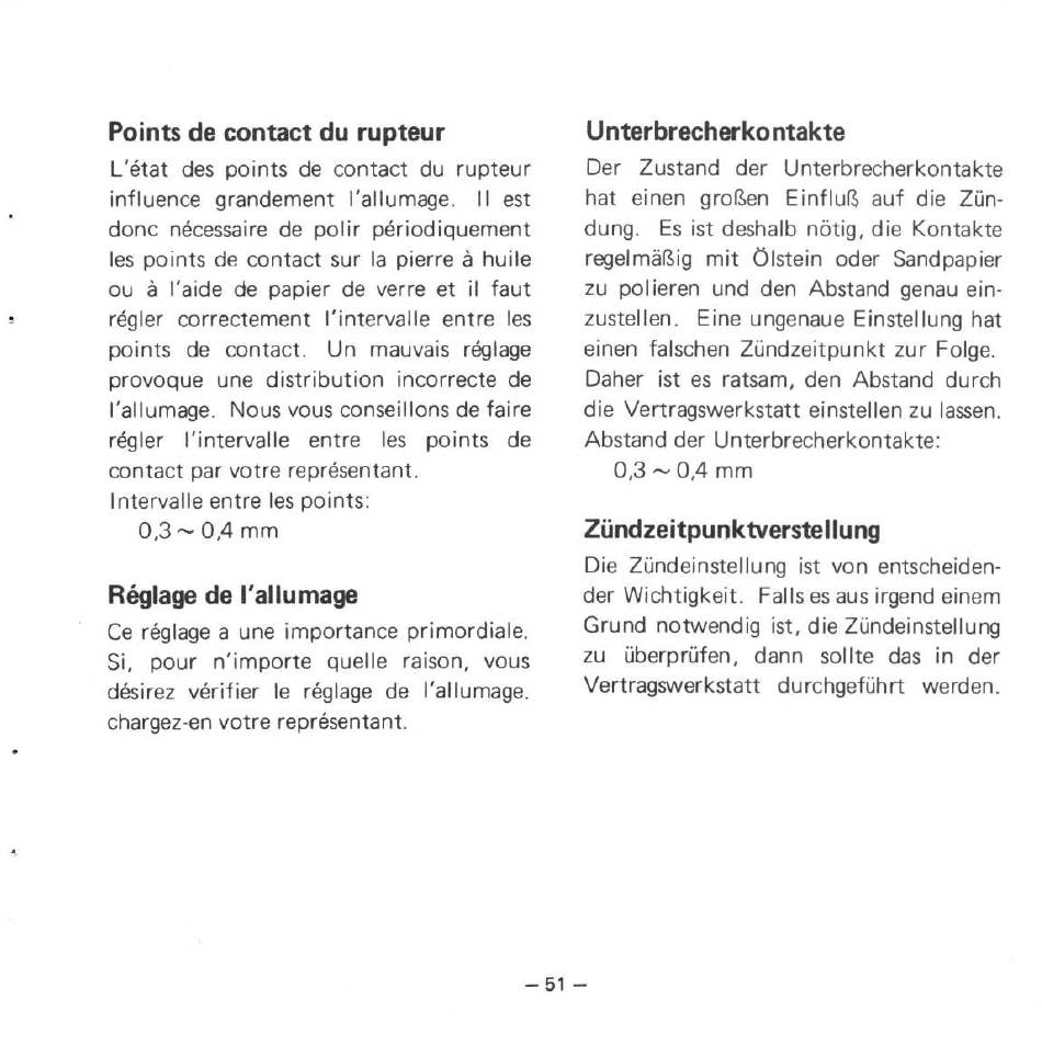 Points de contact du rupteur
